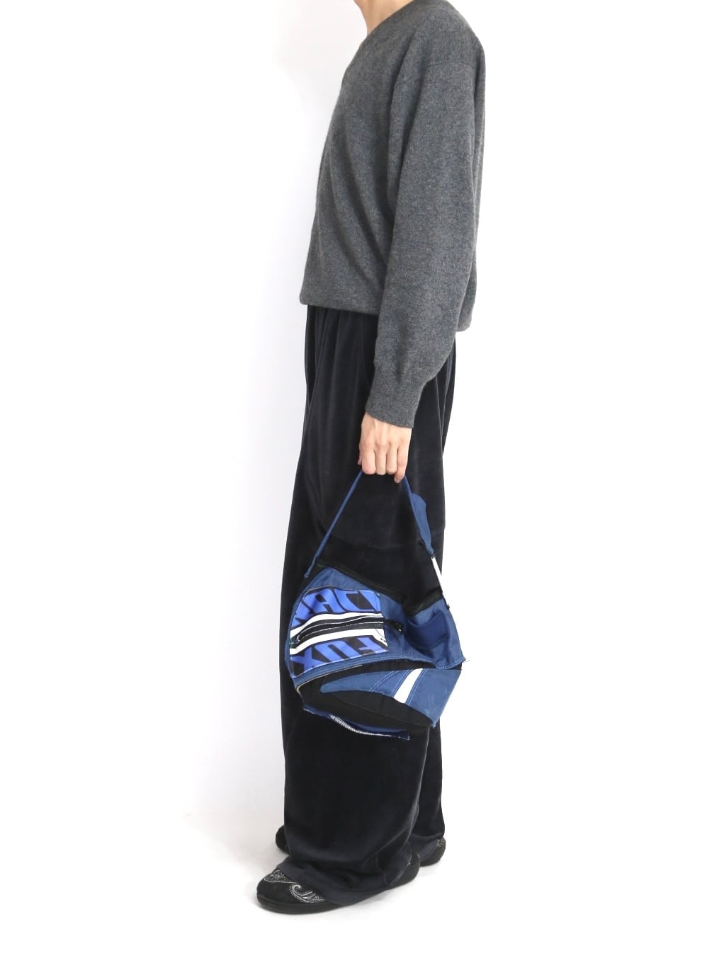 This mini one-strap bag is crafted by deconstructing motocross pants, making use of original brand logos and distinctive parts unique to motocross gear.