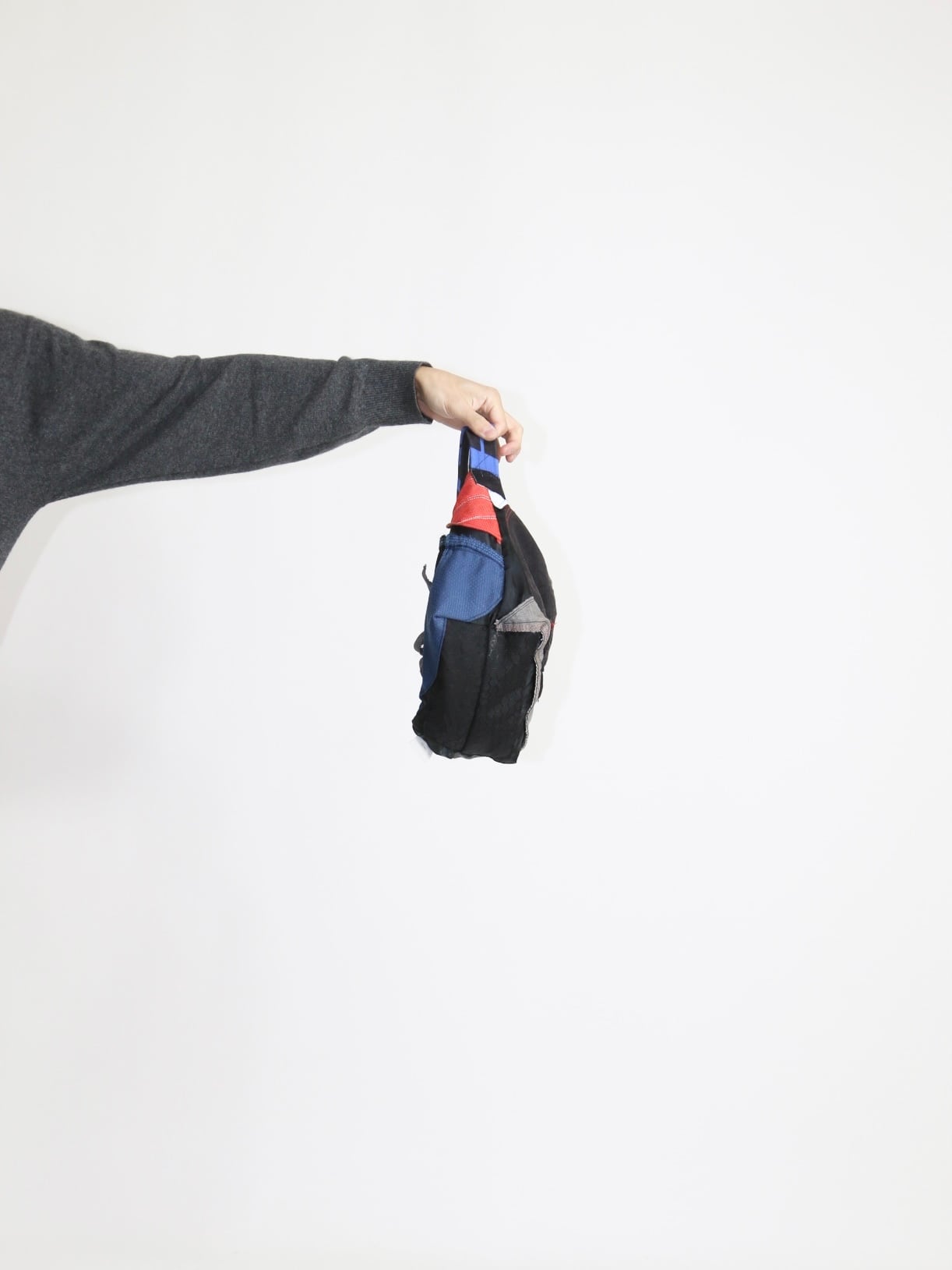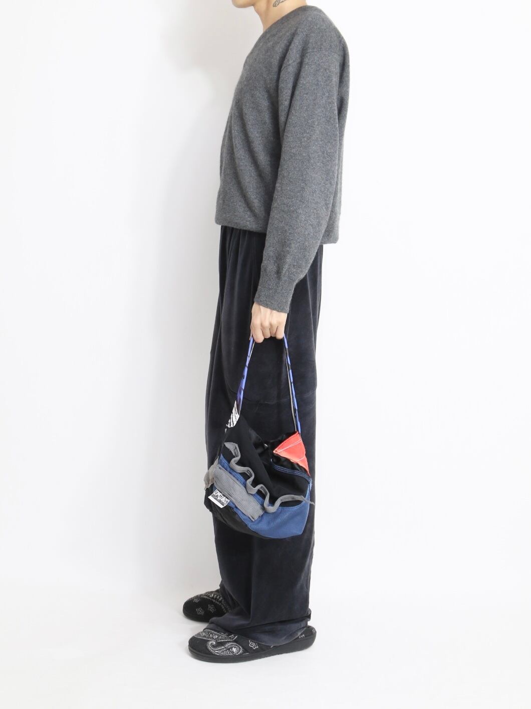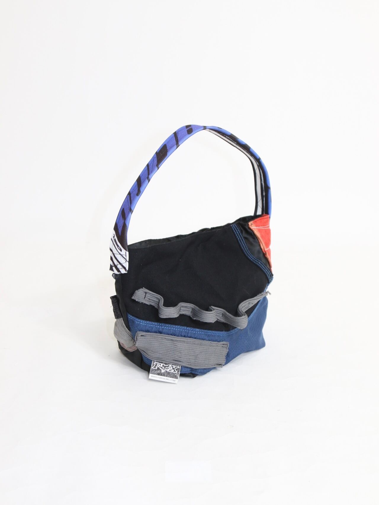 This mini one-strap bag is crafted by deconstructing motocross pants, making use of original brand logos and distinctive parts unique to motocross gear.