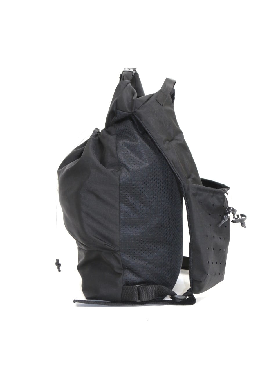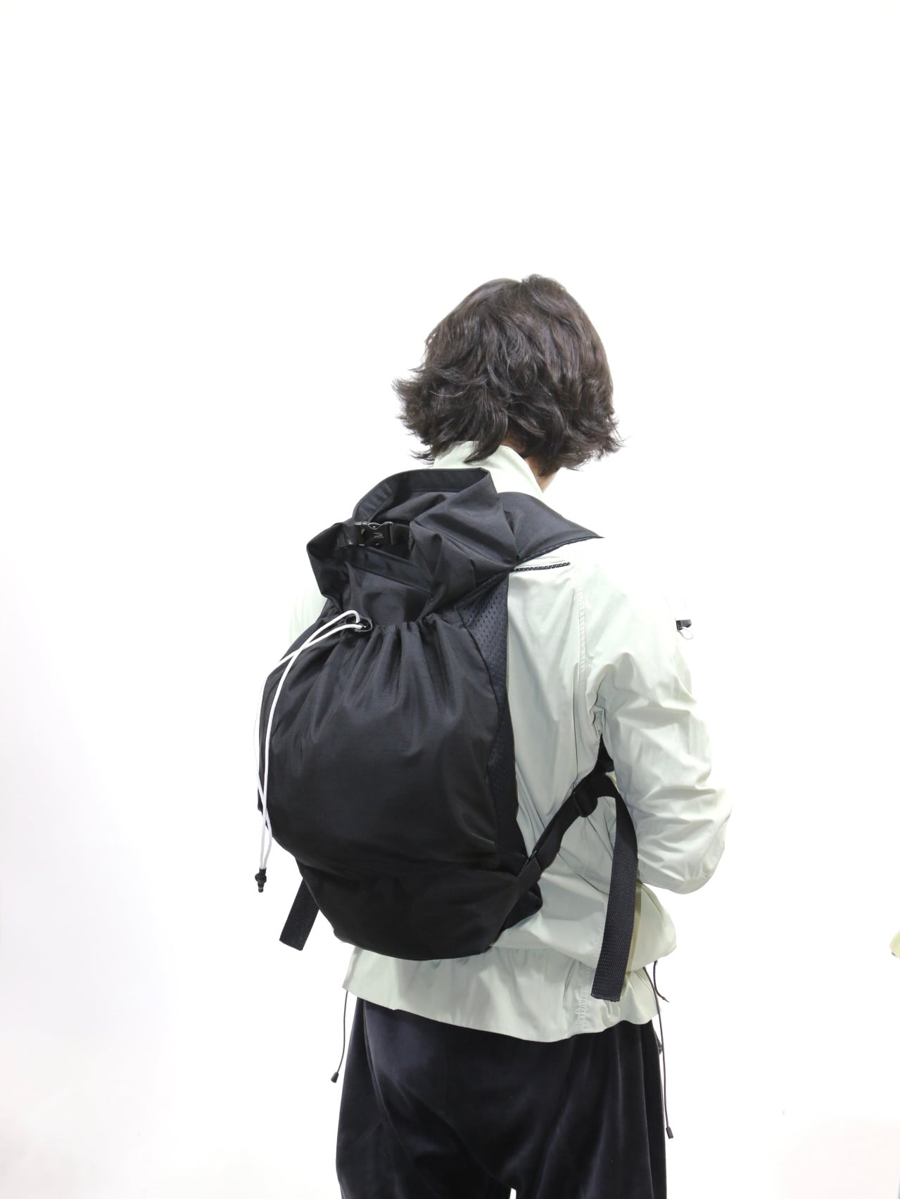 撥水ナイロン素材を使用した、ロールトップ仕様のデイパック。