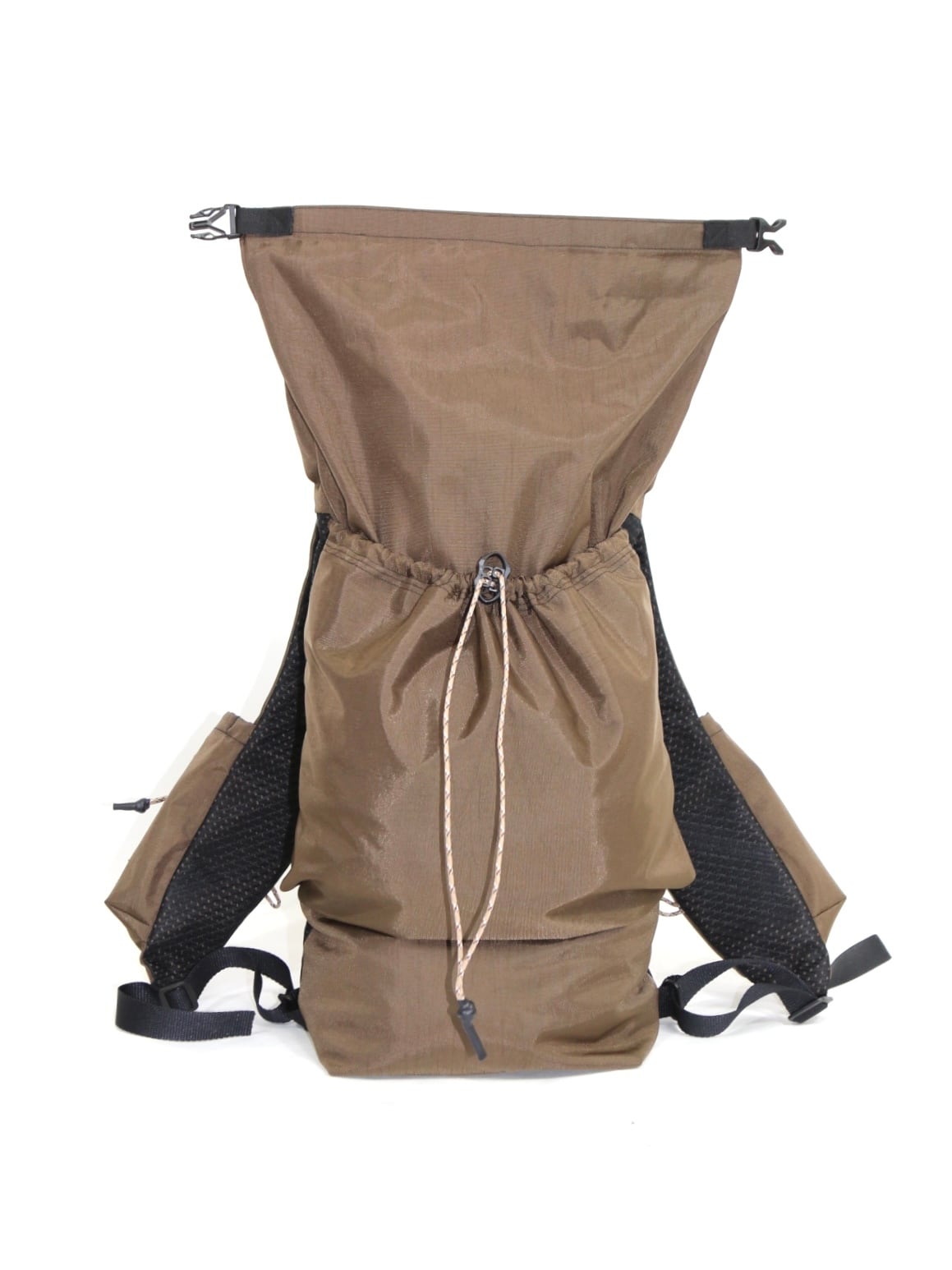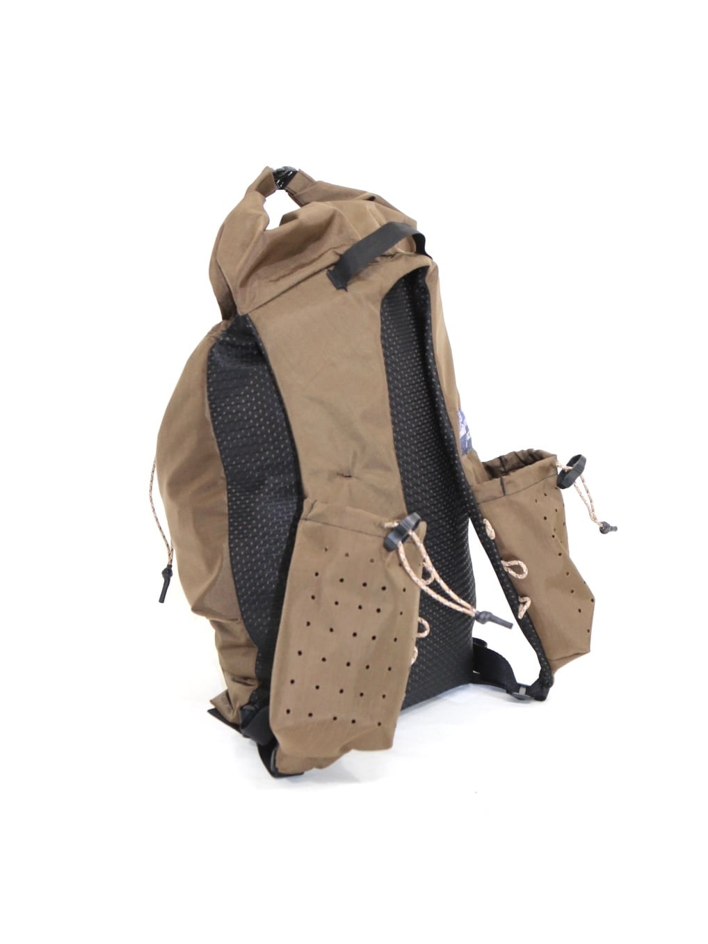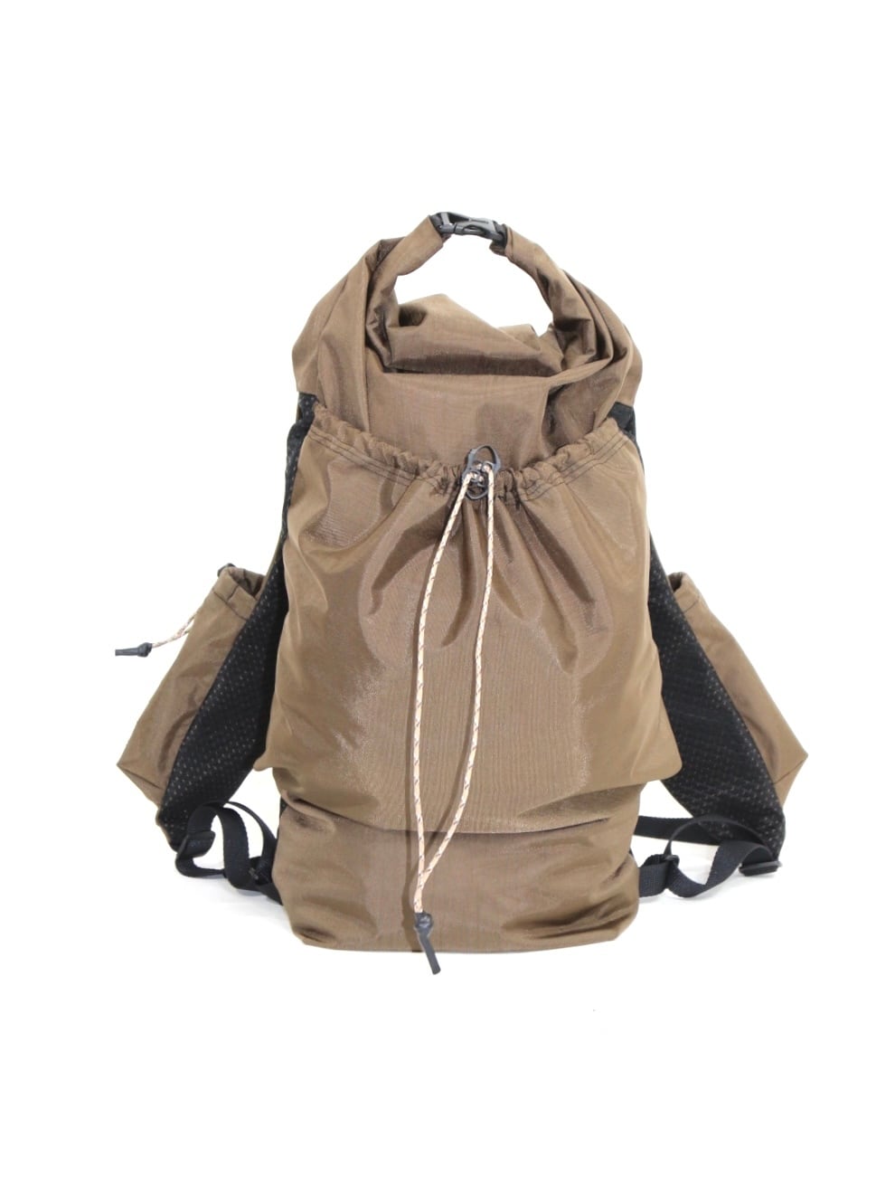 撥水ナイロン素材を使用した、ロールトップ仕様のデイパック。