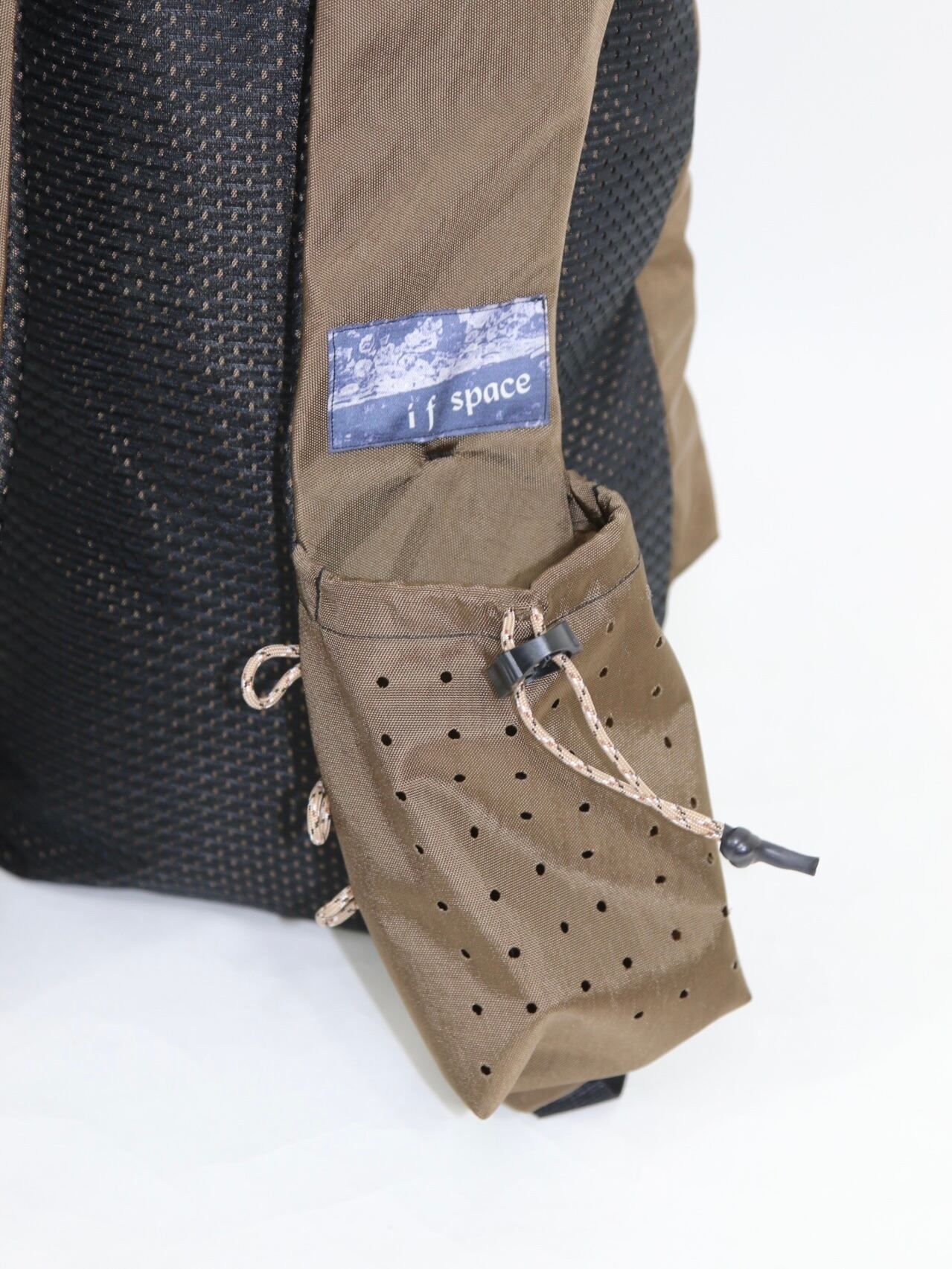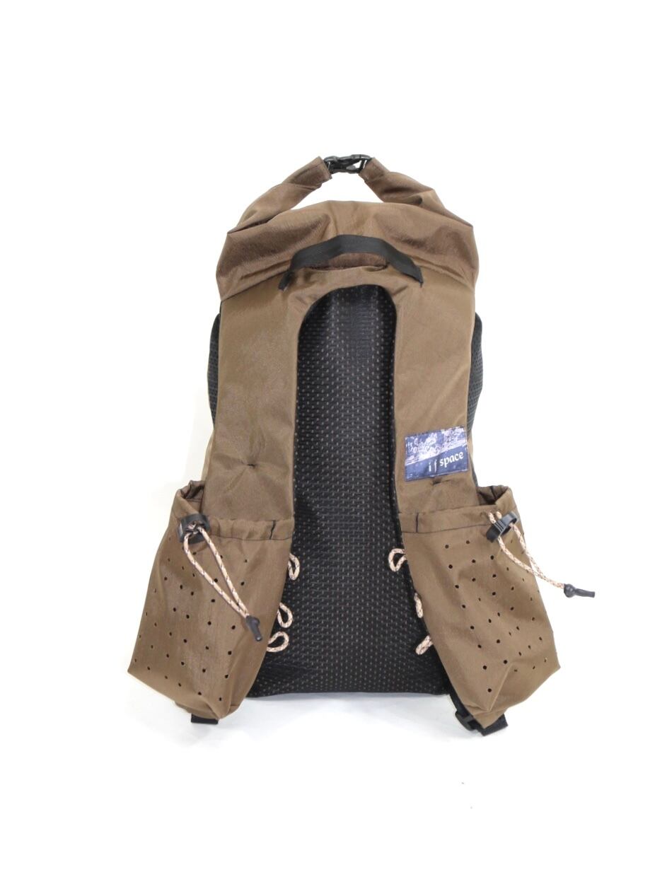 ハーネスショルダー部分には500ml缶が収まるポケットを配置し、機能性と遊び心を両立しています。